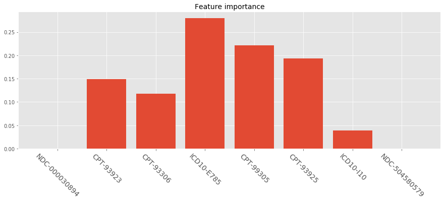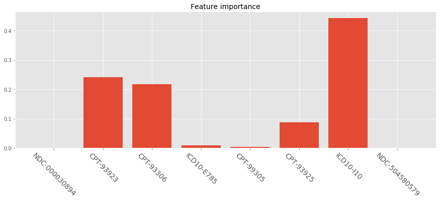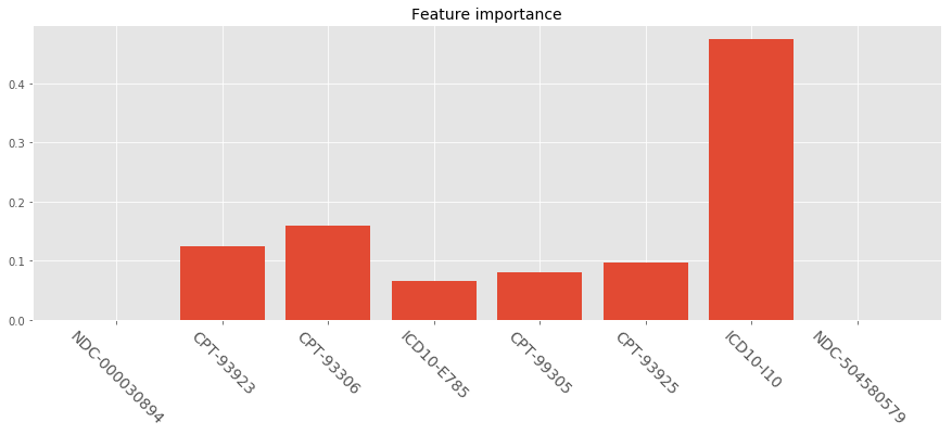 plt.title('Feature importance', fontsize=14)
